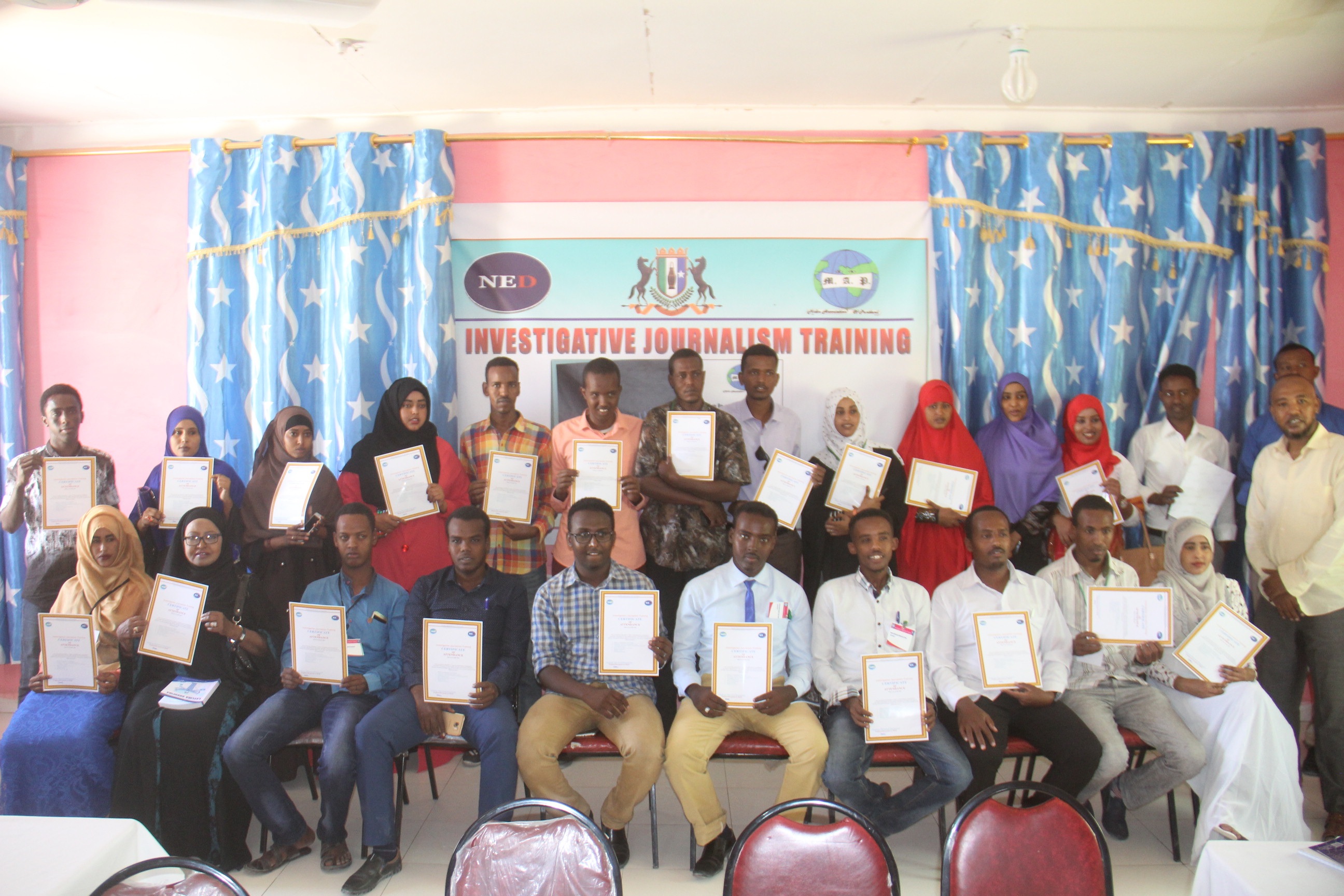 Garowe; The 5 – day Investigative Journalism training organized by the Media Association of Puntland, MAP concluded on March 23, 2017 at the New-Rays Hotel conference Hall, Garowe Puntland capital, with the distribution of certificates to the 30 trainees which include 8 females.