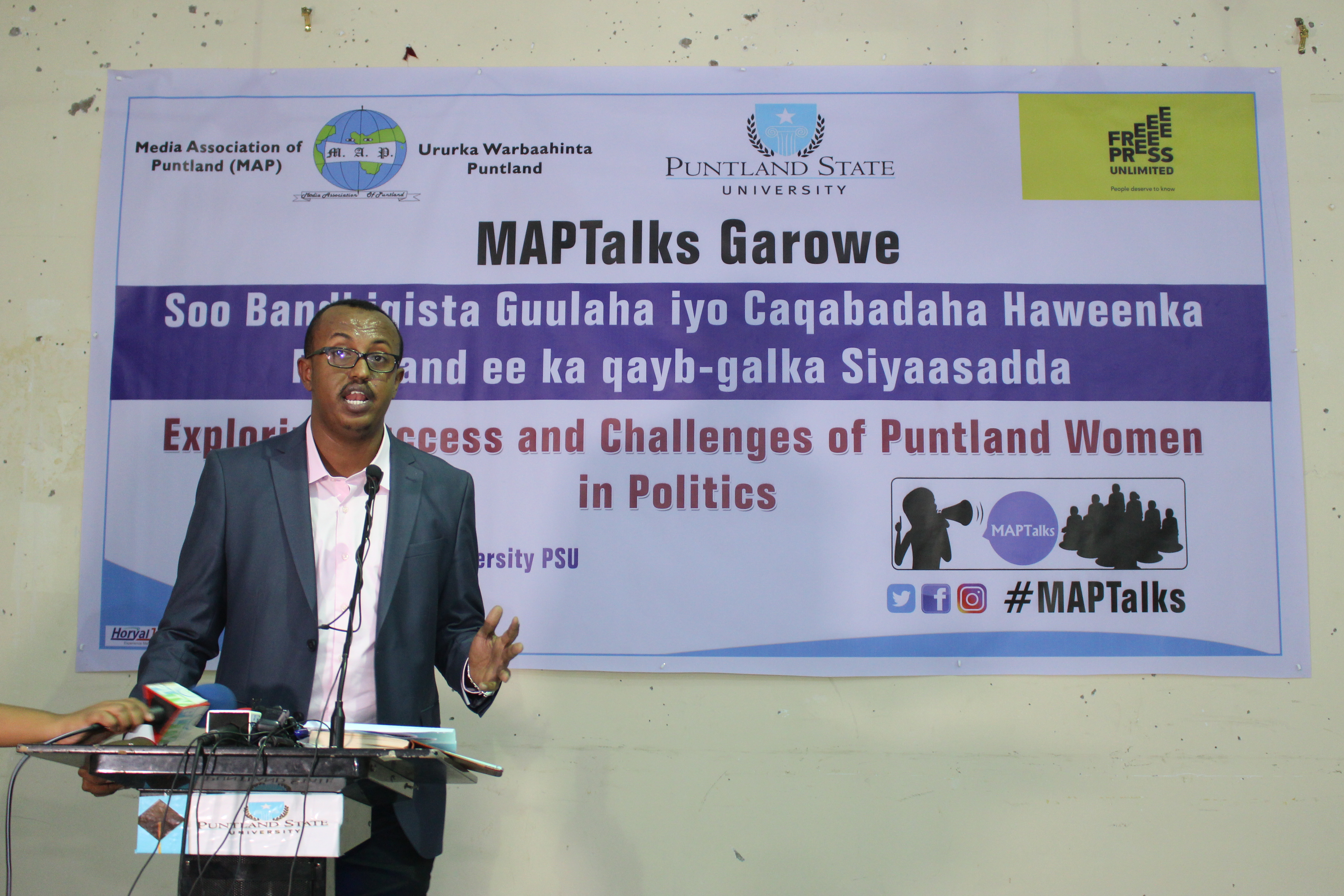 The MAPTalks initiative is supported by the Free Press Unlimited (FPU), a component that falls under the project titled ‘’ Promoting Safety of Journalists and monitoring Professionalism, Media Ethics and gender awareness in Somali Media’’.