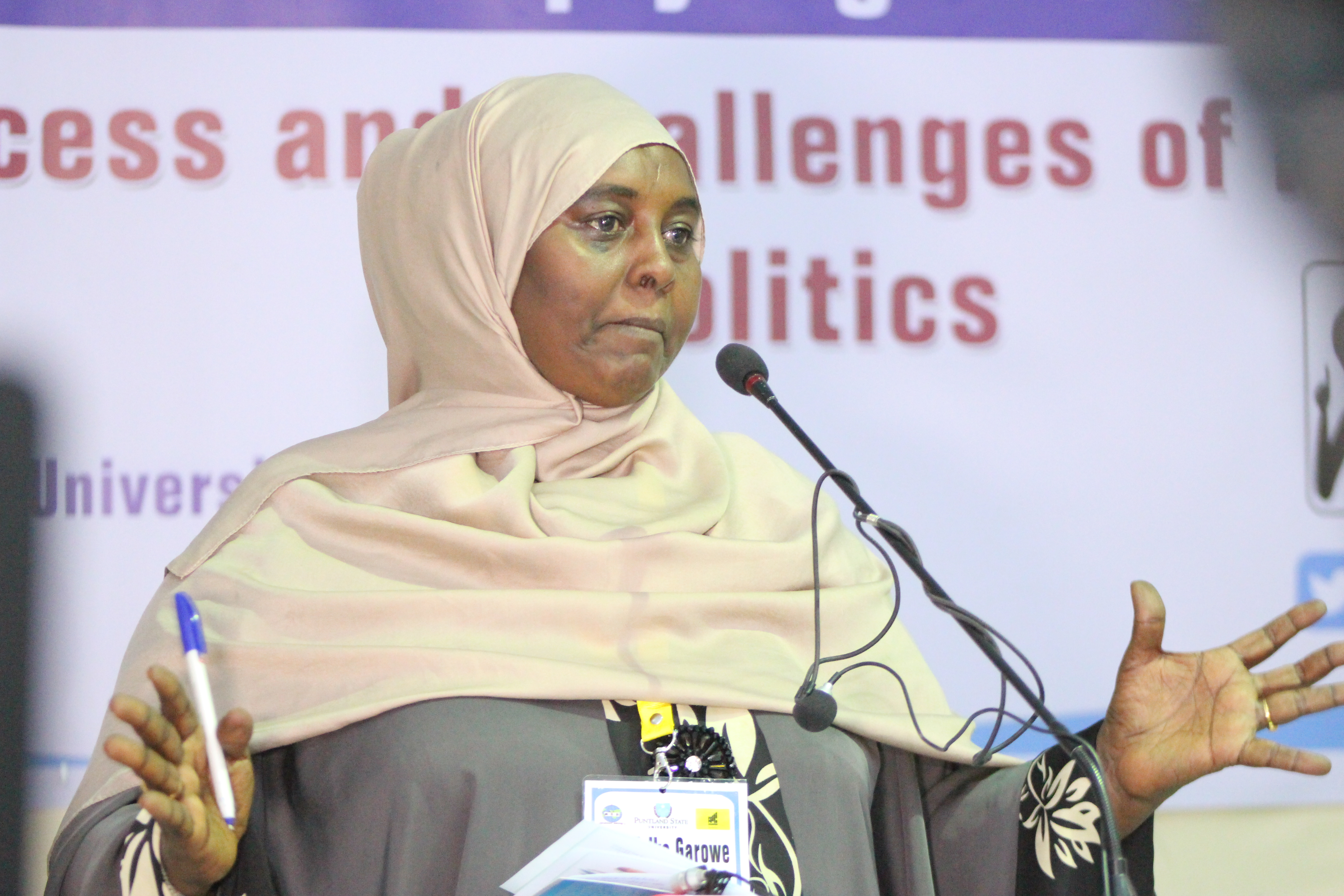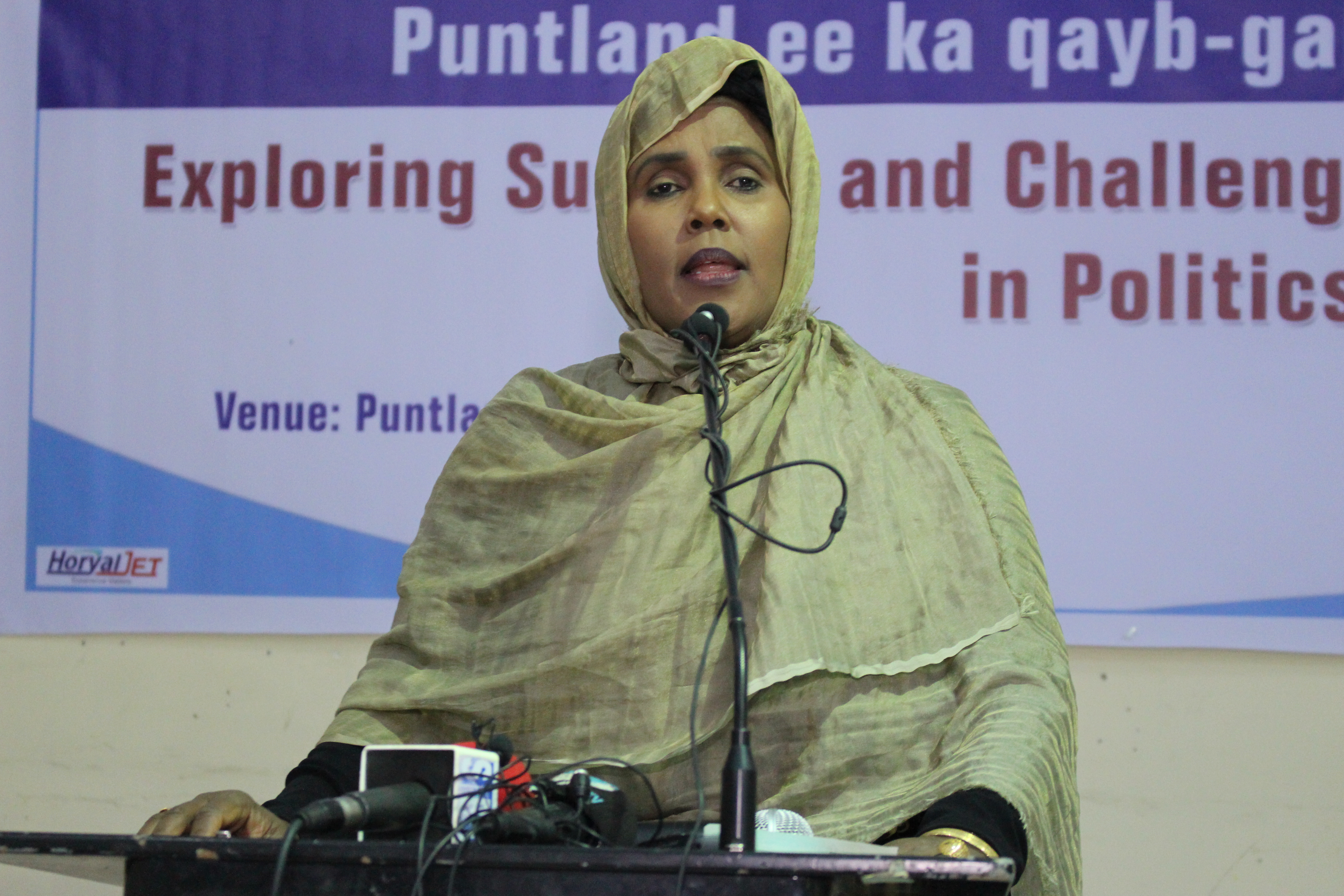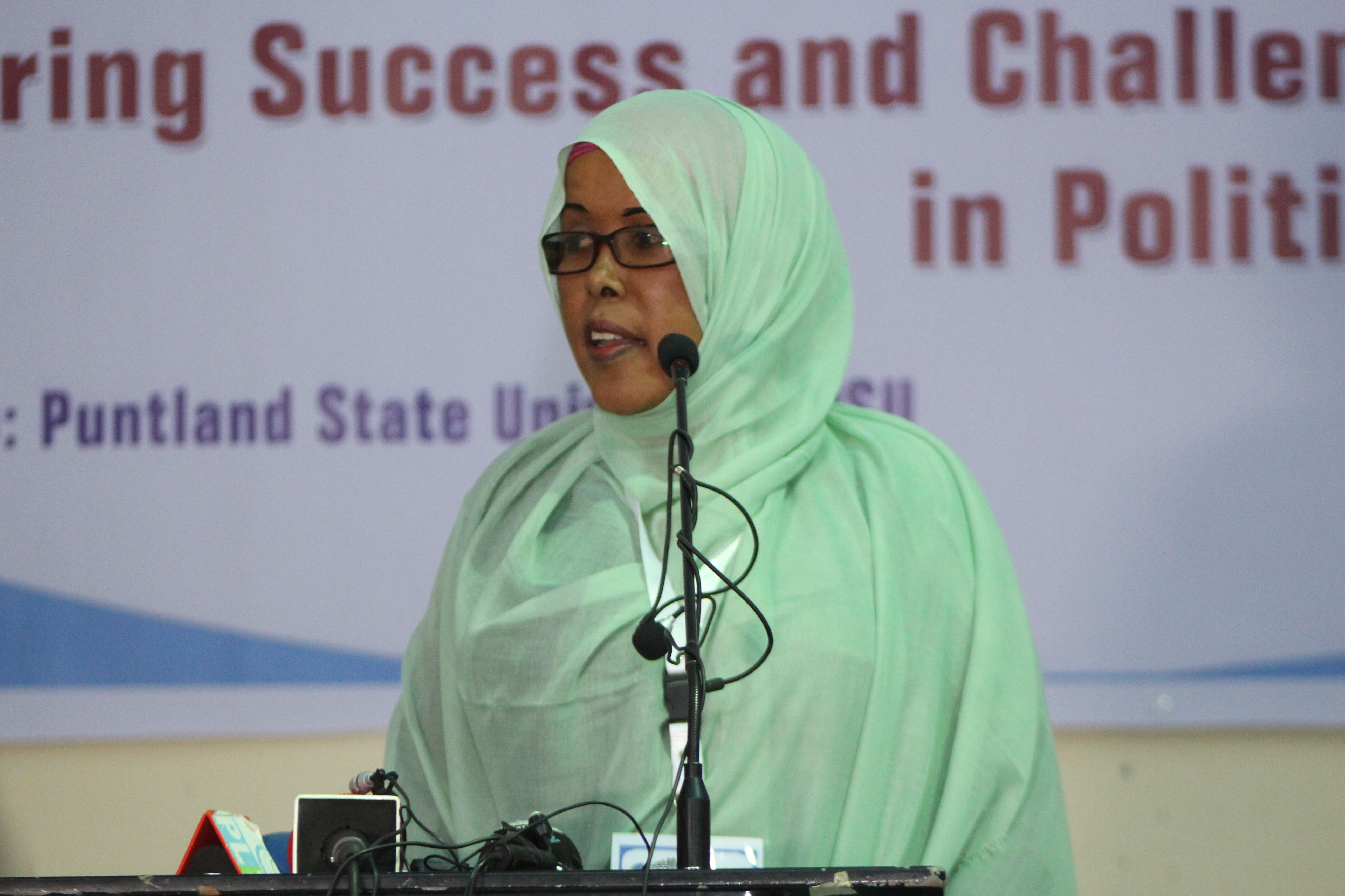 The event selected 10-women-guest speakers, with backgrounds that included or have held political positions such as former and current cabinet Ministers, Members of Parliament, Ambassadors, meanwhile the other speakers were drawn from the private sector such as the Puntland Women Lawyers Association, Research professionals and writers.