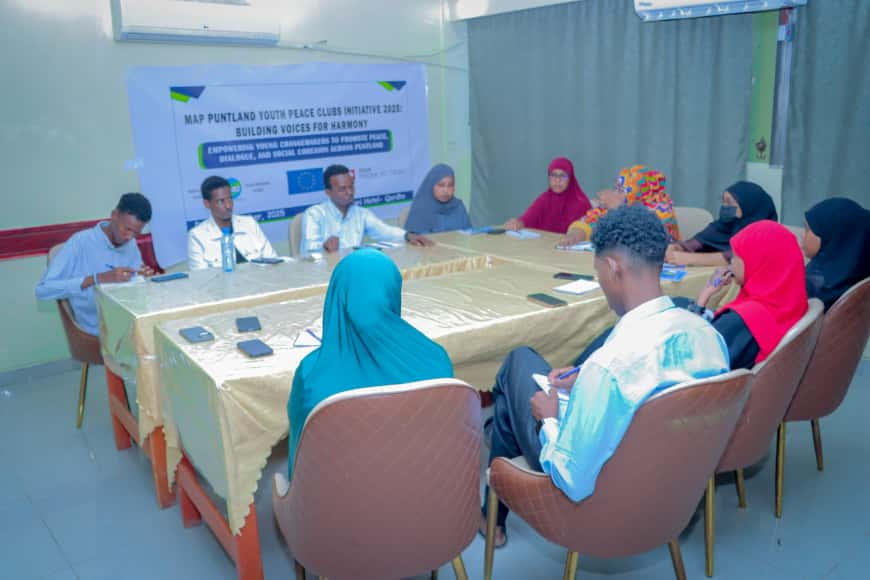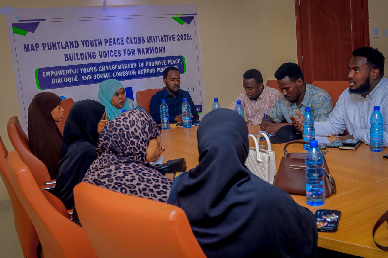 Throughout October 2025, MAP successfully launched community-based peace clubs in Gardho, Bosaso, Garowe, and Galkayo, each composed of ten members with equal representation of young men and women.