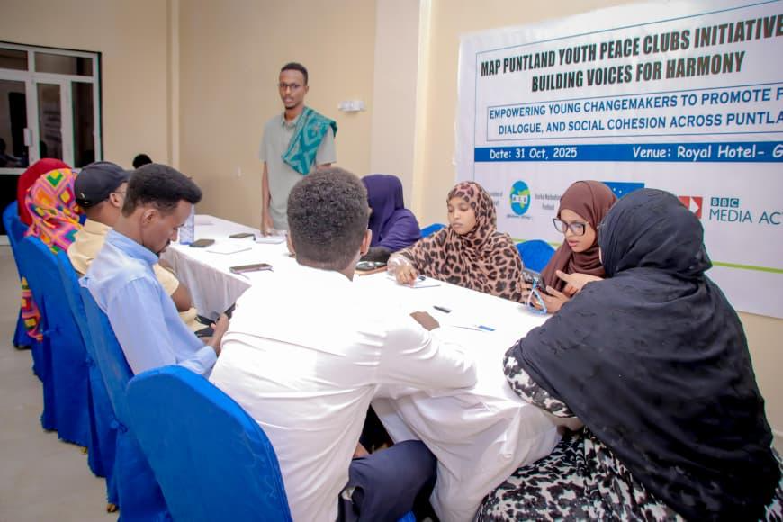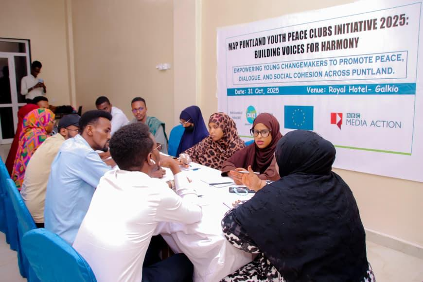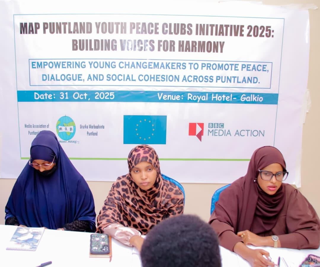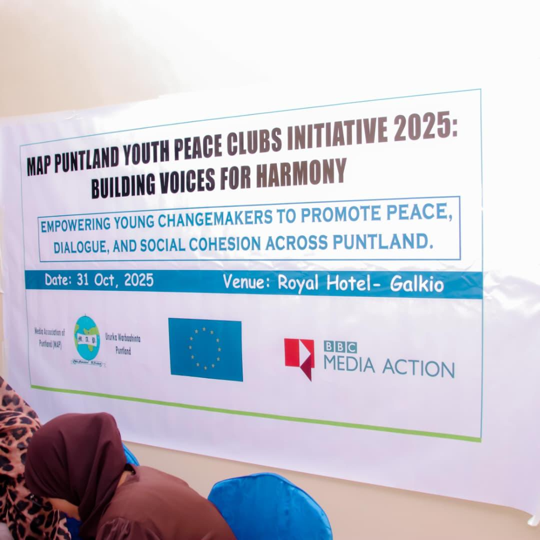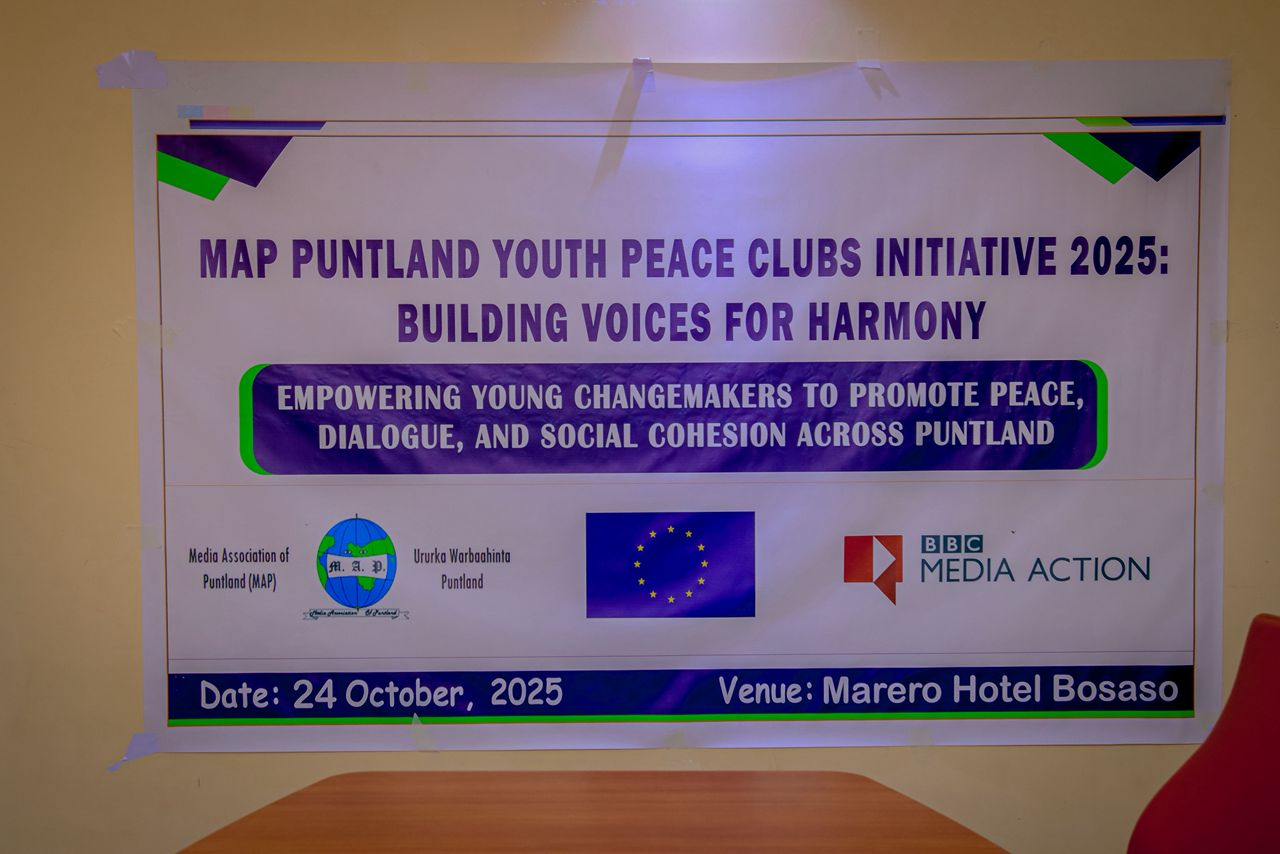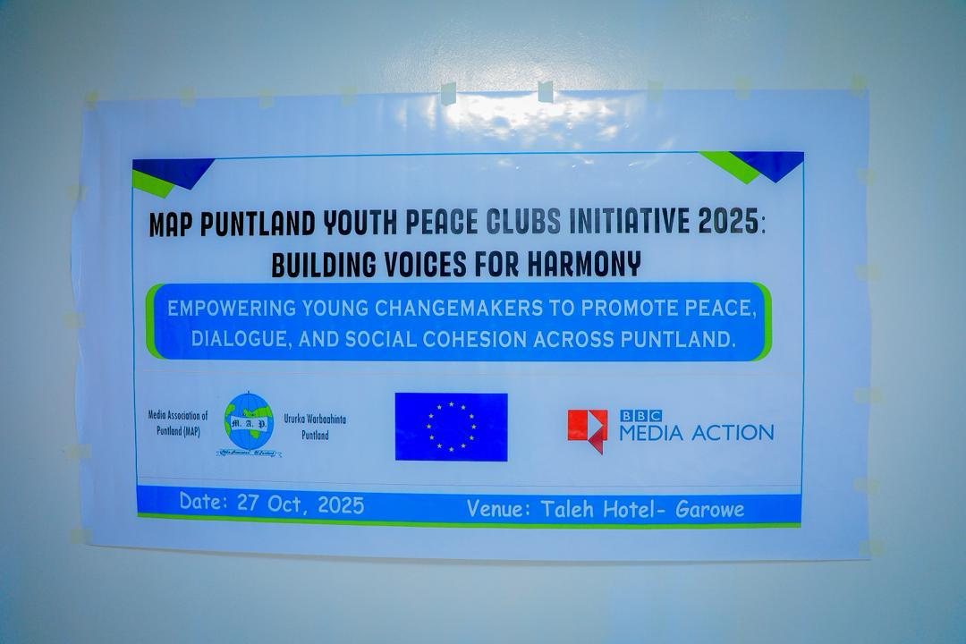 Garowe, Puntland, November 5, 2025: The Media Association of Puntland (MAP), with support from the European Union (EU) and in collaboration with BBC Media Action, has launched a bold new peacebuilding initiative aimed at placing young people at the heart of Puntland’s peace and stability agenda.