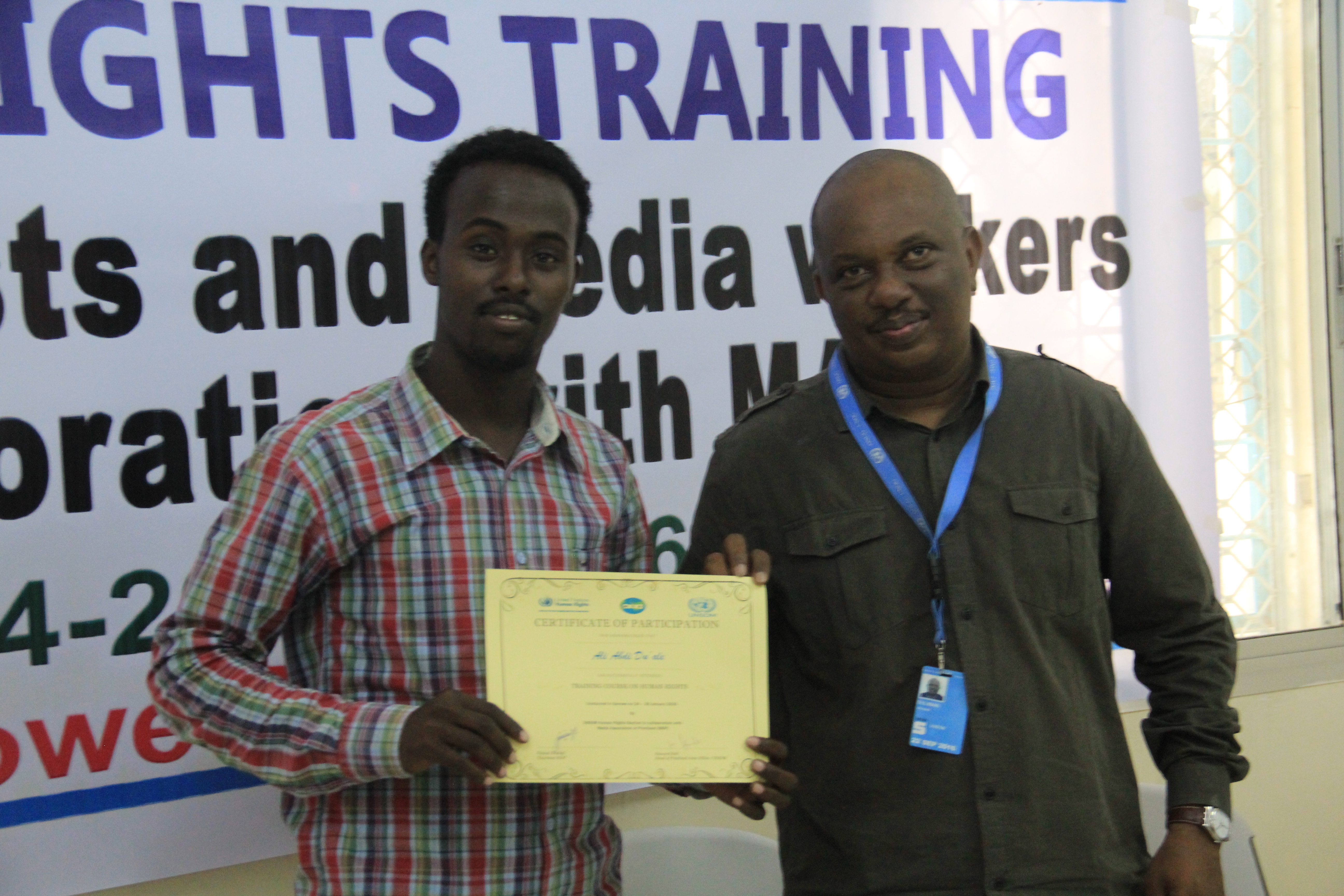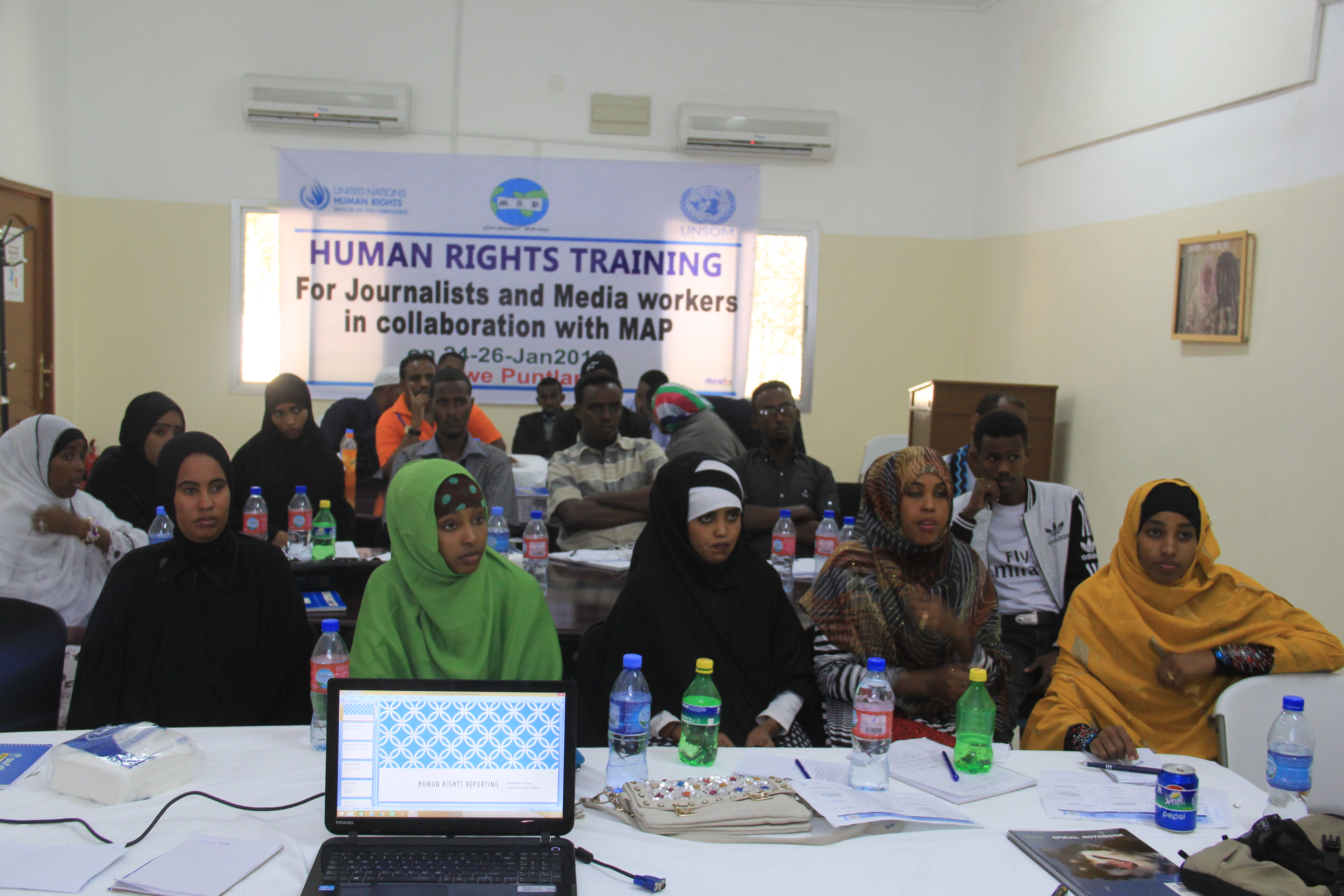 Garowe, Puntland, Somalia 27th Jan 2016: The Media Association of Puntland in partnership with UNSOM Human Rights Regional Office Garowe, concluded yesterday the three day training on Human rights for Puntland Journalists.