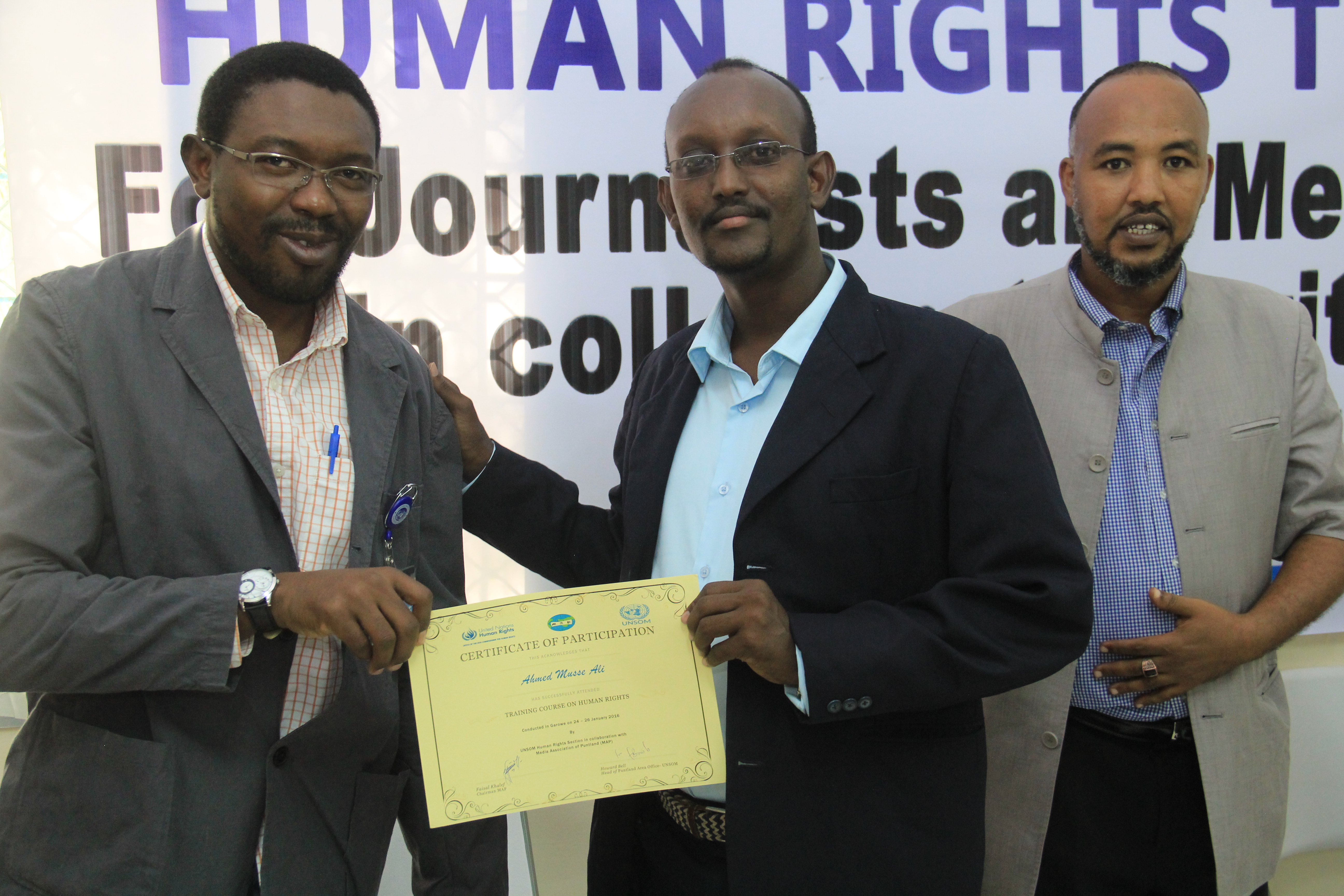 UNSOM’s Regional Director of Human Rights Section Ahmed Suleiman applauded the participants for their commitment; similarly he thanked MAP for its devotion. Sulieman said