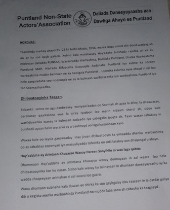 Press Freedom in Puntland: Highlights In 2015