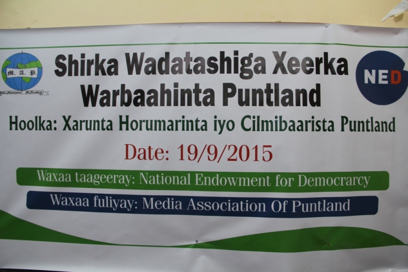Puntland media Stakeholders on 19-20 September 2015 met in Garowe, the administrative capital of Puntland for a 2-day consultative meeting on Puntland media law reforms organized by the Media Association of Puntland and supported by National Endowment for Democracy (NED).