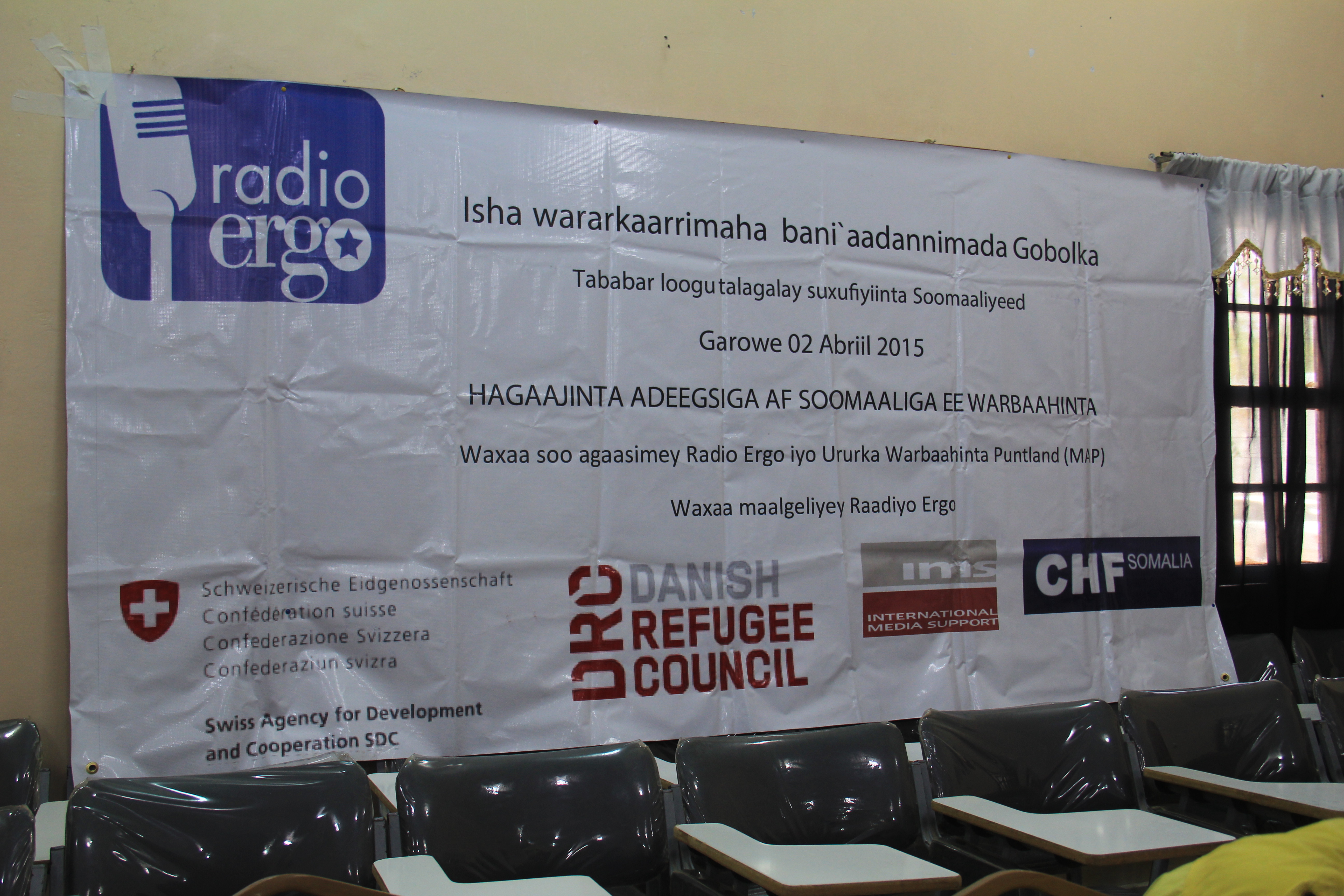 Press Relese, Garowe, 02 April 2015:- Media Association of Puntland (MAP) and Radio Ergo, humanitarian radio station based in Nairobi co-organised training on the Somali language for various journalists and media professionals in Puntland state capital, Garowe on Thursday.