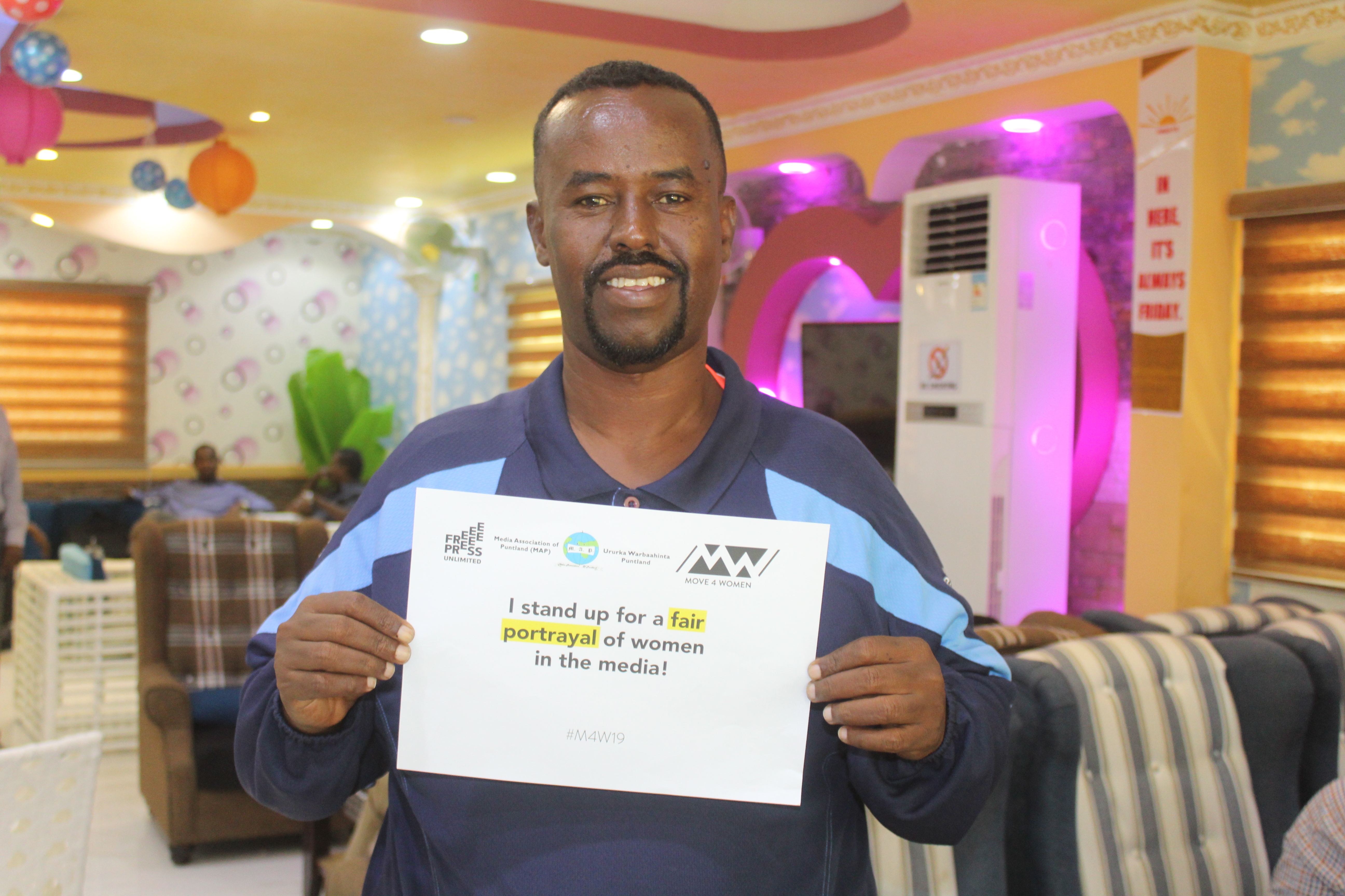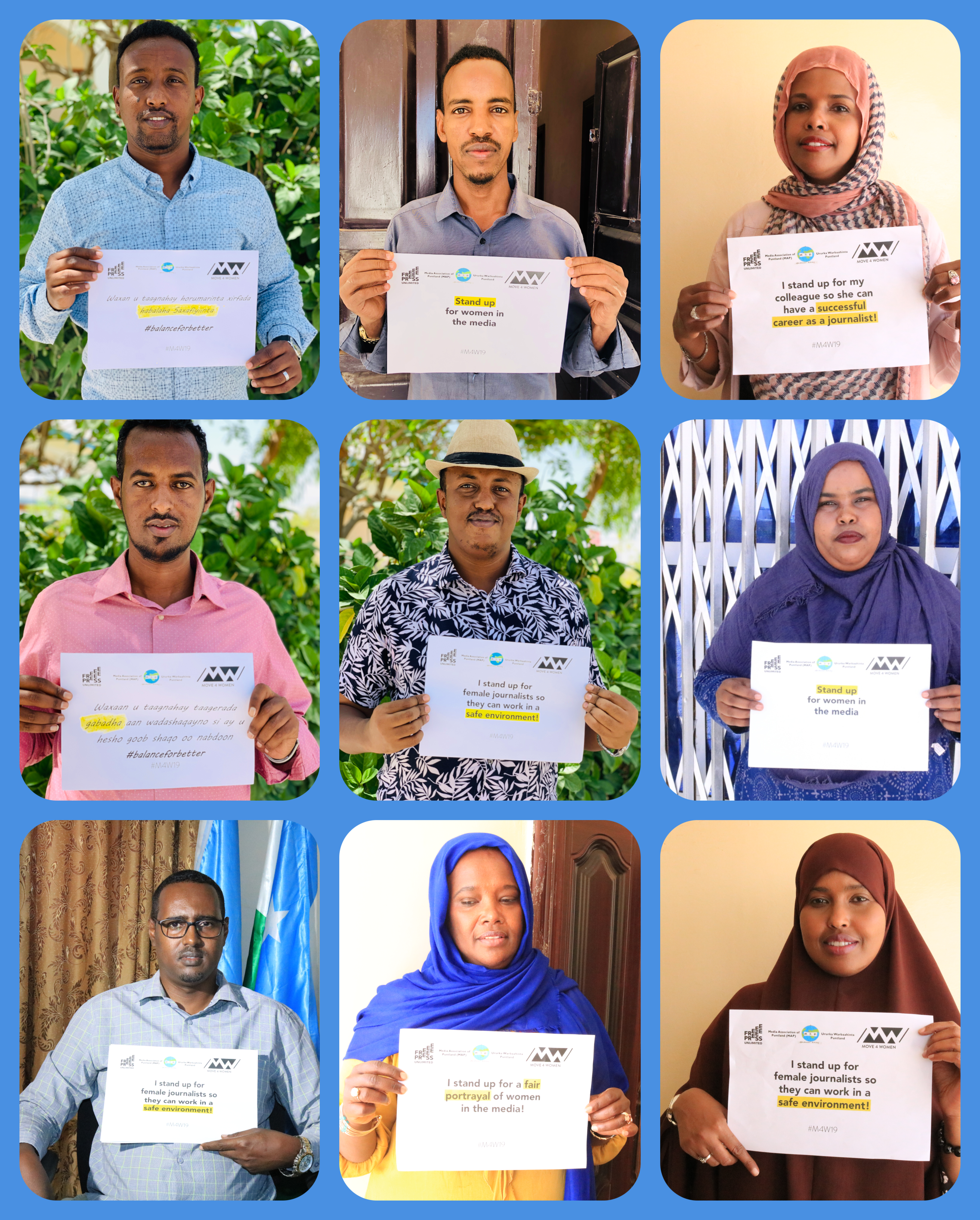 The #M4W19 online campaign: On the on eve of the IWD19, from March 6-7, MAP launched an online social media campaign using the hashtag #M4W19 and ”shouts” tailored to show solidarity to female journalists. Members from the media, youth groups, diaspora, celebrities, and the public at large joined the online campaign while taking pictures holding shootout written A4size paper.