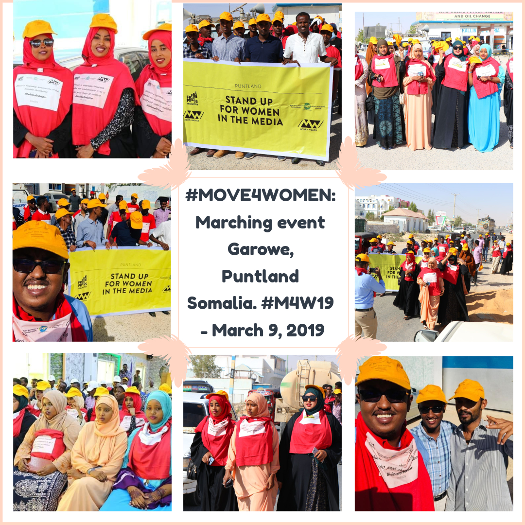 Garowe, Thursday 13, 2019: March 8 marks the International Women’s Day, which rejoices the attainments of women in all spheres of life. This year’s theme, “think Equal, Build Smart, innovate for change”, could not have come at a better time. In Puntland, to commemorate the event, MAP joined the global initiative #Move4Women, a practice invented by the Free Press Unlimited (FPU) aimed at highlighting the importance of gender equality, participation & the decision-making of women in and through the media.