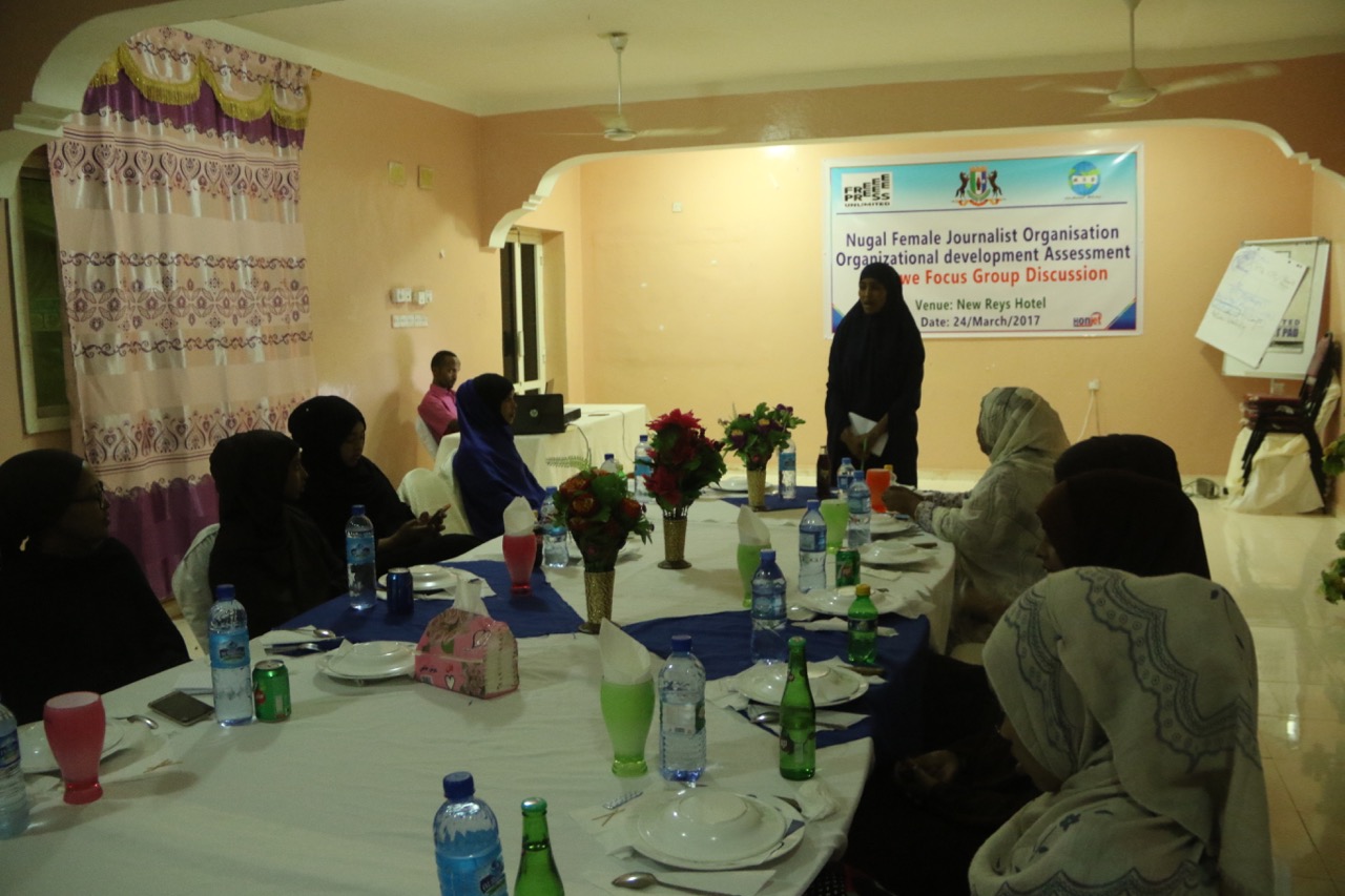 March 28, 2017; The focus group discussion (FGD), organized by the Media Association of Puntland, a program under the Free Press Unlimited supported project titled ‘’Assessing Gender landscape in the Puntland Media’’ (AGLPM), gathered over 20 participants of the Nugaal Female Journalists organisation based in Garowe the administrative capital of Puntland. The interactive meeting was held at the New Rays hotel on the March 23, 2017 in the evening.