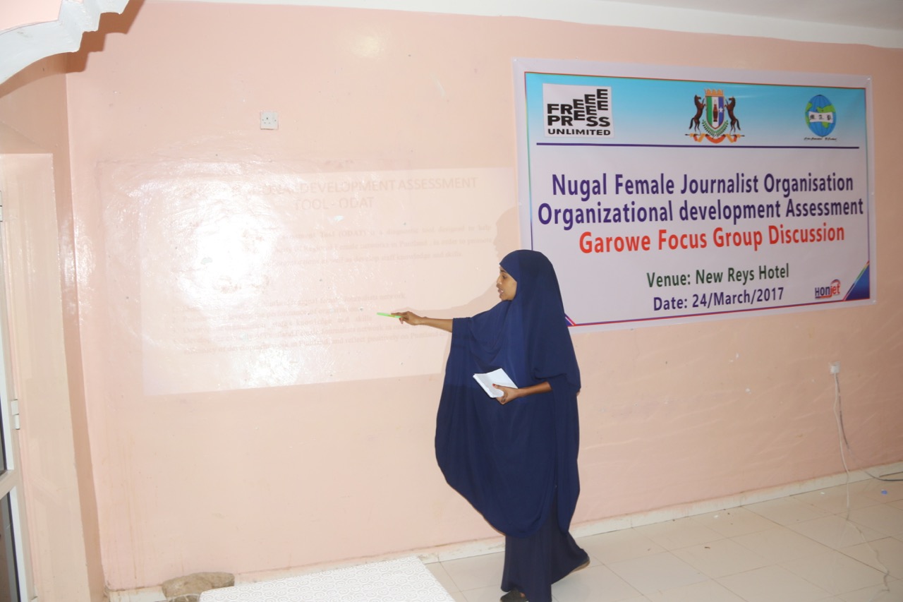 The aim of this FGD was to assess the organisational capacity of the Nugaal Female Journalists organisation (NUFJO). The organisational development assessment (ODAT) questionaire was the format used to flesh out issues faced by Nugaal Female journalists organisation in regards to the organisational development.