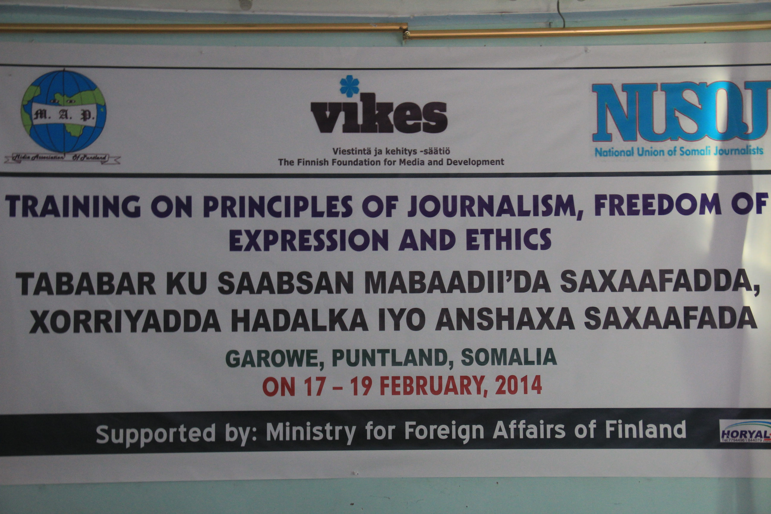 The Media Association of Puntland in collaboration with National Union of Somali Journalist (NUSOJ) and Finnish Foundation for Media and Development (VIKES) conducted three day workshop for at least 30 journalists drawn all media stations in Puntland.