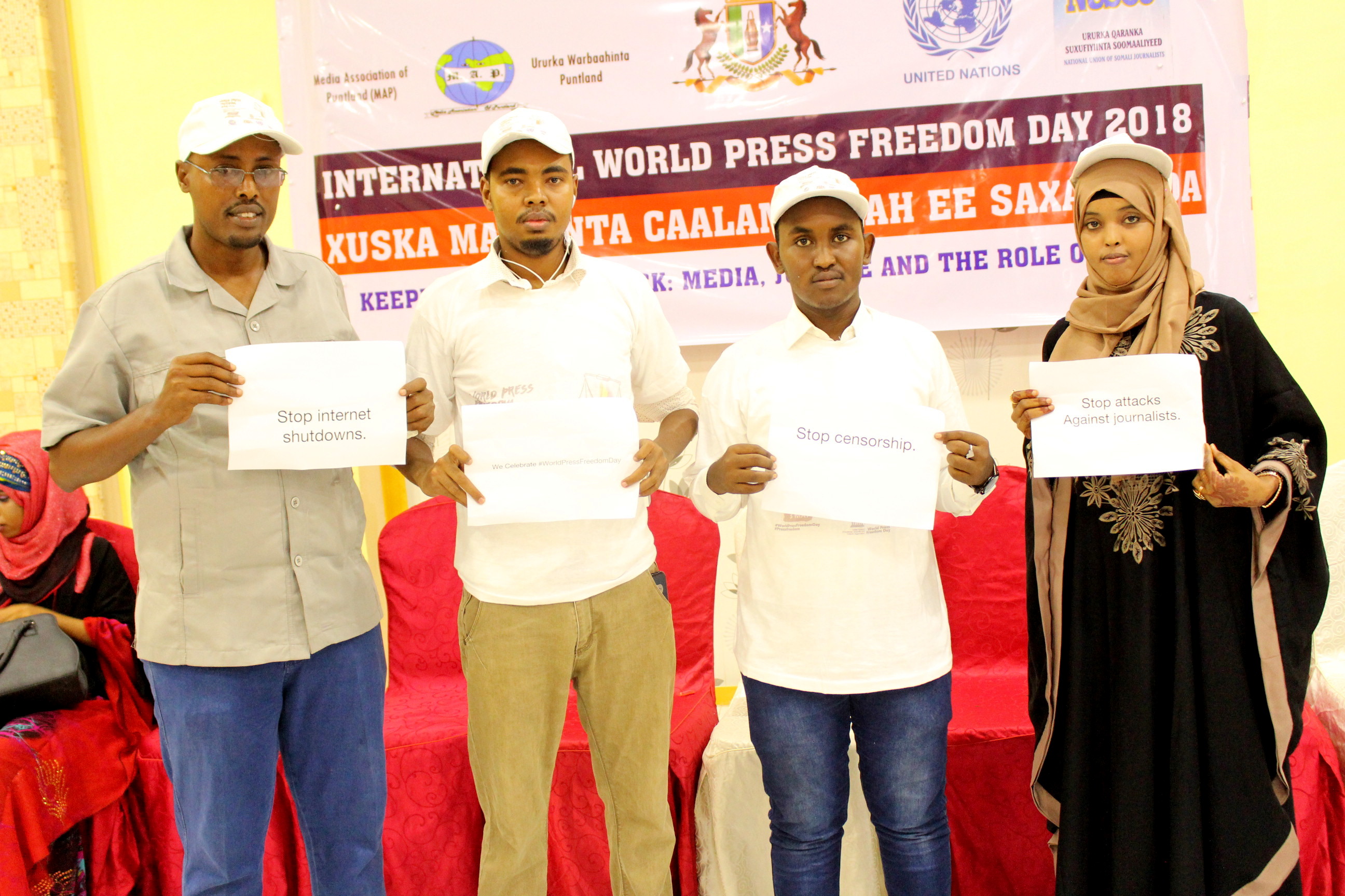 Magaalada Bossaso ee xarunta gobolka Bari ayaa lagu qabtay maanta 03 May, 2018 munaasabadda xuska maalinta caalamiga ah ee Saxaafada (World Press Freedom Day 2018).